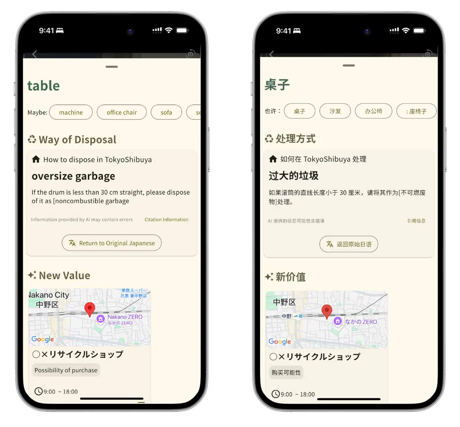 このアップデートにより、「撮るだけで手放し方がわかる」というTrash Lensのコアな体験が、言語の壁を越えて強化されます。ユーザーはこれまで以上に直感的に、複雑な日本のゴミ分別情報を母国語でスムーズに確認できるようになります。Trash Lensが提供する直感的で手軽な操作性はそのままに、複雑な日本のゴミ分別ルールへのアクセスが格段に向上し、言語に関わらず誰もが適切な処分方法を簡単に見つけられるようサポートします。Trash Lensは、言語や文化の違いを乗り越え、誰もが意識することなくより良い資源活用を実践できる社会の実現を目指し、今後もサービスの改善と機能拡充に努めてまいります。
